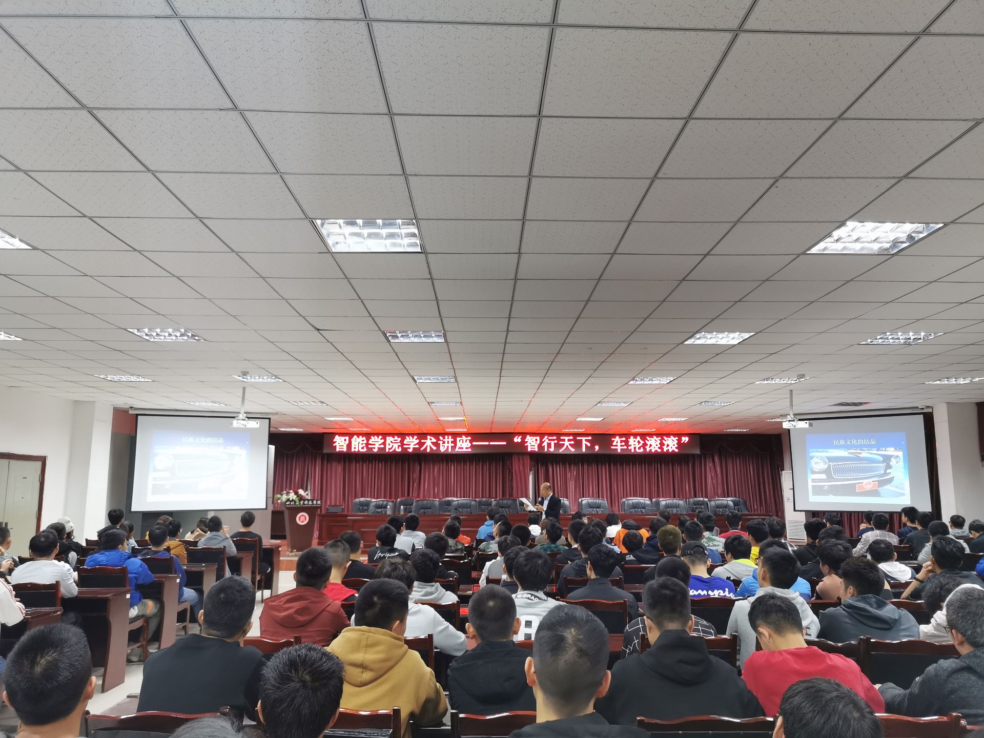 2019年10月31日晚,由智能学院组织的学术讲座于图书馆408拉开帷幕。本次讲座由智能学院副院长徐纯厚教授担任主讲,何彬老师担任主持人。学院院长刘国跃博士、许勇教授、杨郑副书记及智能学院在校汽服和车辆专业的全体学生到场聆听了本次讲座。徐教授生动形象的讲述了汽车的发展史以及汽车未来的发展趋势,不仅丰富了同学们对汽车的认知,更是为同学们未来的发展指明了方向。