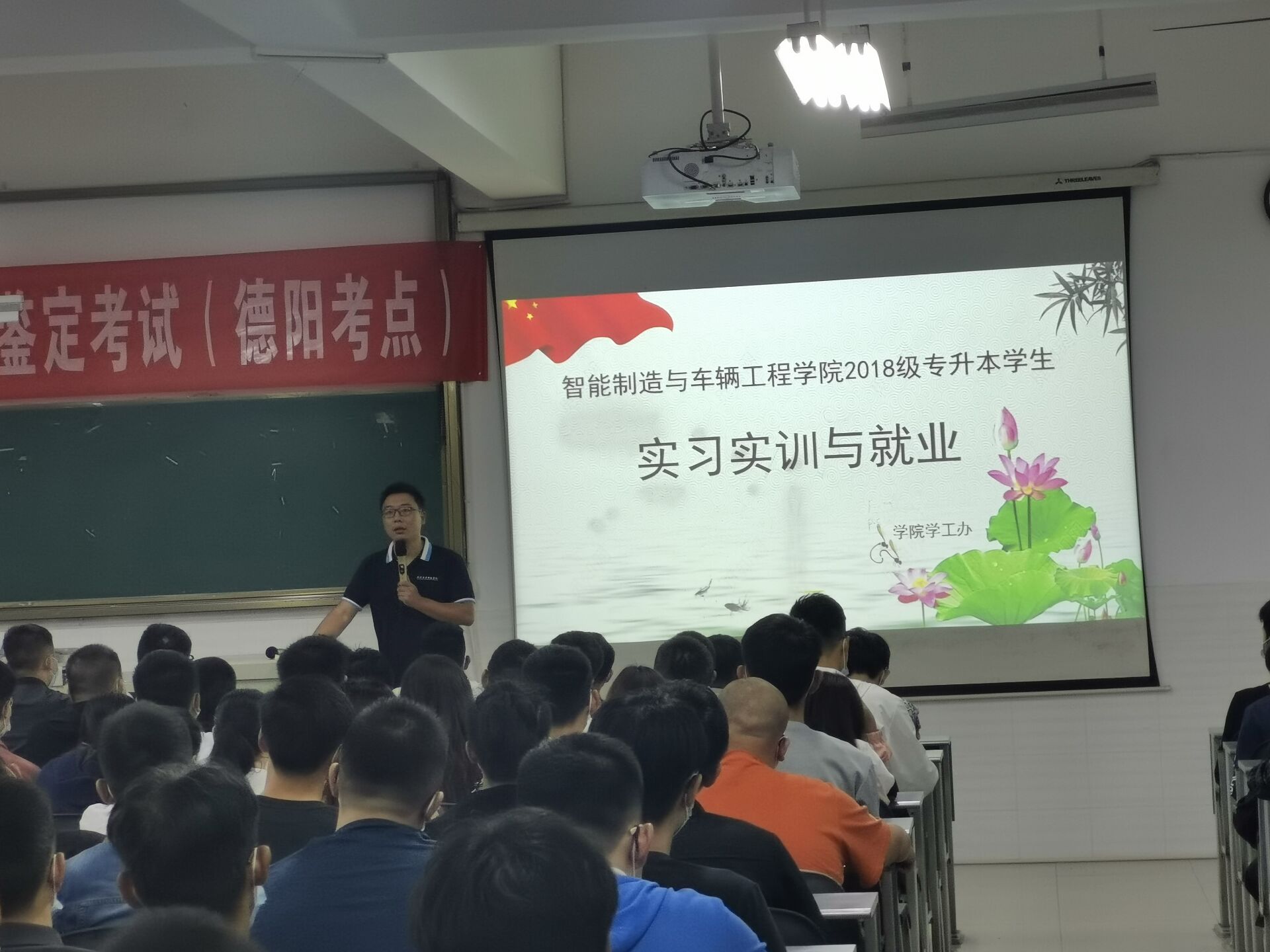 秋意正浓,叠翠流金,又是一年开学季,智能制造与车辆工程学院迎来了2018级专升本新生。为使新同学能快速融入全新的学习和生活环境,9月21日,智能学院组织召开系列新生入学教育讲座,讲座涉及 “学籍管理”、“专业宣讲”、“学生常规管理”、“实习实训”、“院长寄语”等专题。