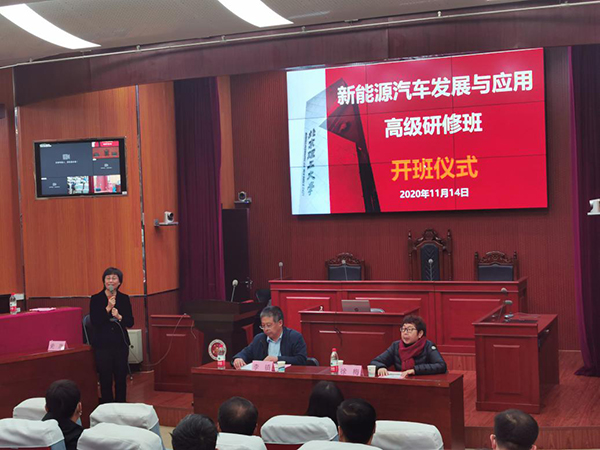 2020年11月14日,由人力资源与社会保障部和北京理工大学联合举办的“新能源汽车发展与应用高级研修班”开班式北京理工大学举行。人社部事业单位人事服务中心继续教育和国际合作处、中国继续工程教育协会秘书处徐梅处长,北京理工大学继续教育学院李镇院长出席开班式并致辞,来自全国各地的新能源汽车领域的企业管理者、工程技术人员、高校相关学科专业带头人等60位学员参加了开班式。我院教师袁新参加了此次研修班学习。
