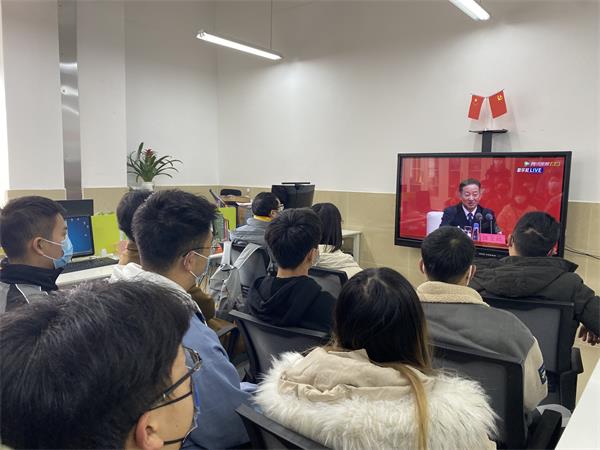 2021年11月12日上午,智能制造与车辆工程学院党总支认真组织学院党员干部和广大师生观看党的第十九届六中全会新闻发布会,学习贯彻中国共产党第十九届中央委员会第六次全体会议精神,本次学习严格落实“不聚集”“不扎堆”防疫要求,采用集中和分散结合的方式进行收看。