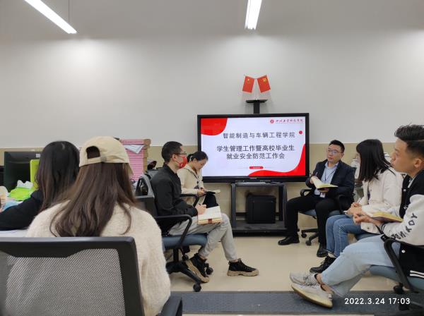 24日下午,智能学院全体辅导员在龑江C509召开学生管理工作暨高校毕业生就业安全防范工作会议。