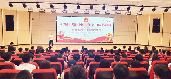 活动伊始,何彬老师郑重地为同学们介绍这一部新中国历史上第一本为青年著作的白皮书——《新时代的中国青年》。接着,何彬老师以《青春心向党,建功新时代》为主题进行了致词。他指出,新时代,新发展,在座的各位同学作为学院莘莘学子的代表更应该学习和贯彻白皮书的精神,做勇于争先、不断拼博的新时代青年。最后,党总支副书记马志雪老师对此次活动进行了总结:“作为新时代的中国青年,应与时代主题同心同向,砥砺奋斗!”。