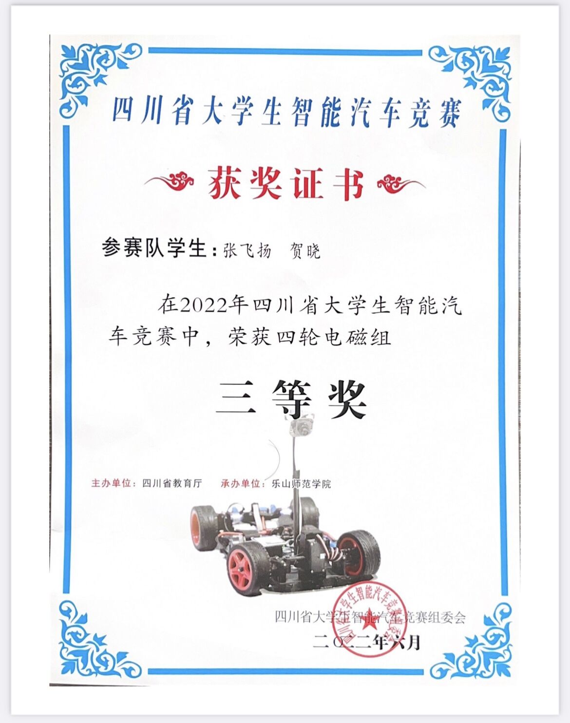 近日,四川省教育厅公布了2022年四川省大学生智能汽车竞赛成绩,我院荣获四轮电磁组三等奖。