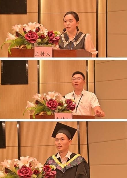 随后教师代表詹婷,毕业班辅导员代表何彬,毕业生代表张宝山同学分别在典礼上发言。
