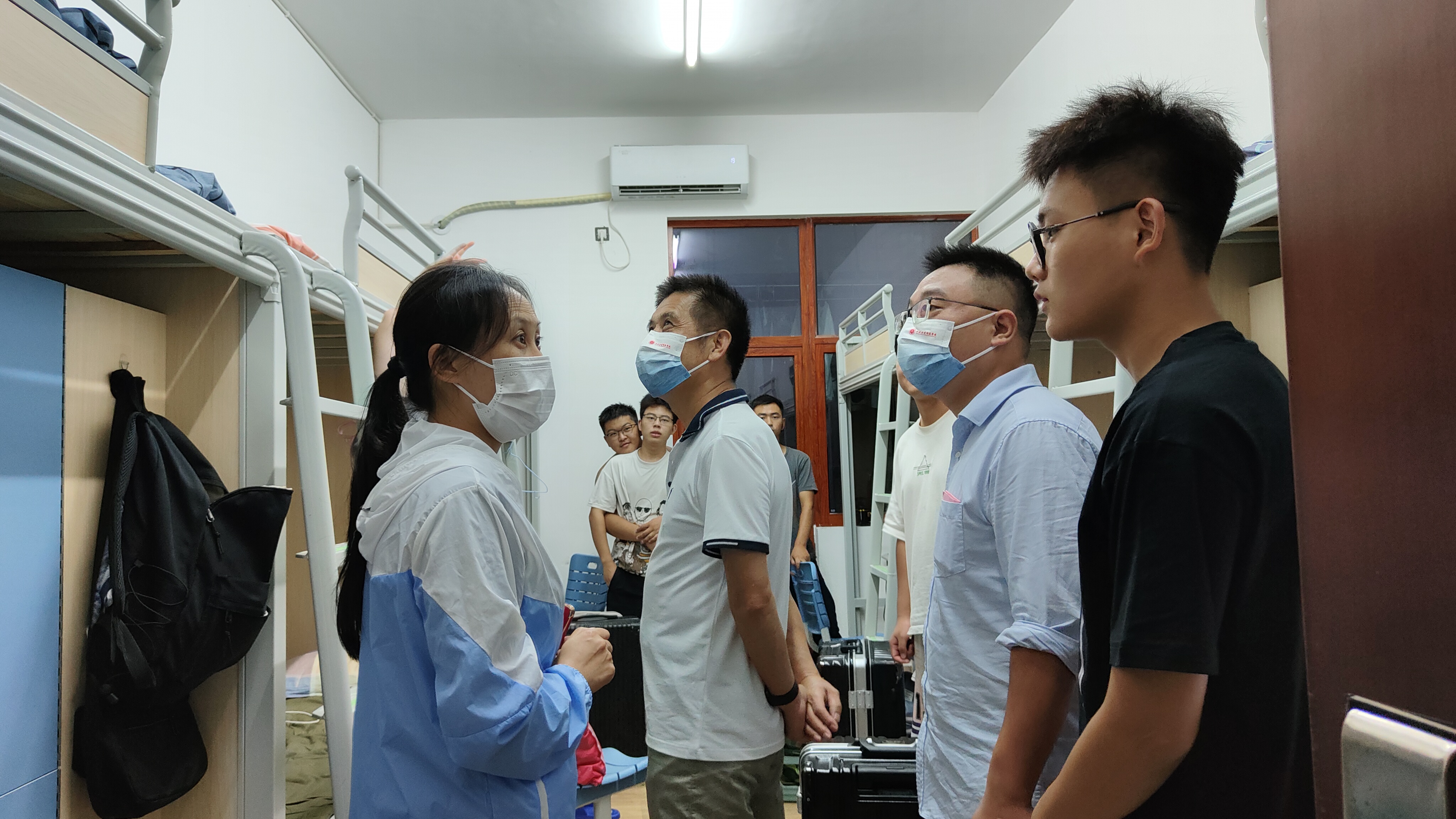 为了解智能学院2022级新生的思想动态、开学适应情况,2022年8月28日晚,院长郑敏、党总支副书记马志雪、学工办主任何彬带领全体专职辅导员深入新生寝室,对新生同学进行了走访慰问。首先,辅导员点名认识了全体寝室成员。走访中,郑院长、马书记、何主任询问了新生同学对校园环境、寝室住宿、饮食生活等方面的感受,解答了他们提出的问题和疑问,了解了他们的专业、特长和兴趣,呼吁新生同学互帮互助、相互包容,尽快适应从高中到大学的转变,全身心投入到大学四年的学习生活中,让大学过的充实有意义。新生同学表示,他们会尽快调整自己,以全新的面貌迎接大学生活!