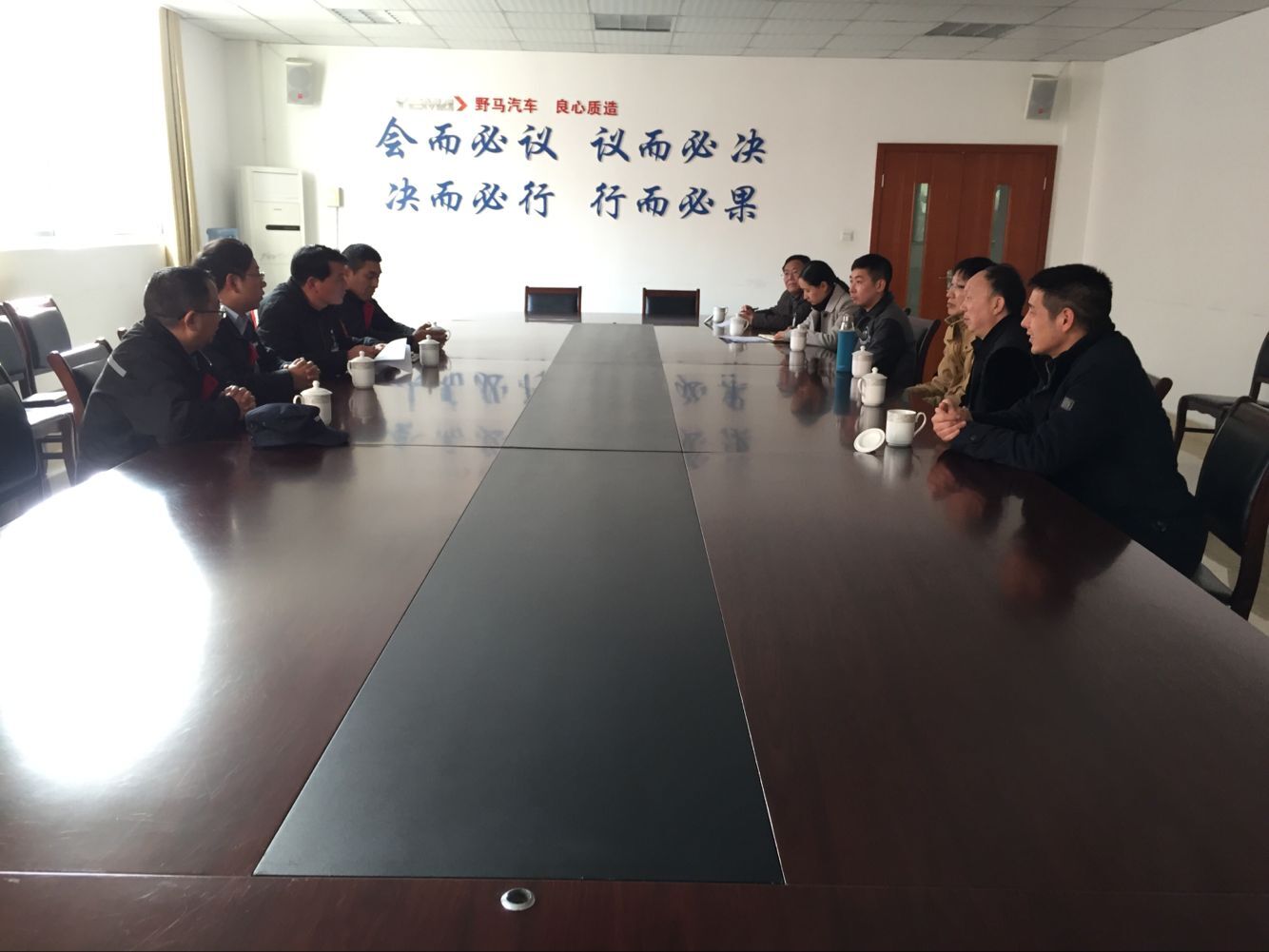 在绵阳野马汽车有限公司调研中,调研组一行在公司吕部长的亲自带领下,首先实地参观考察了该公司的冲压车间、焊装车间、涂装车间、总装车间。