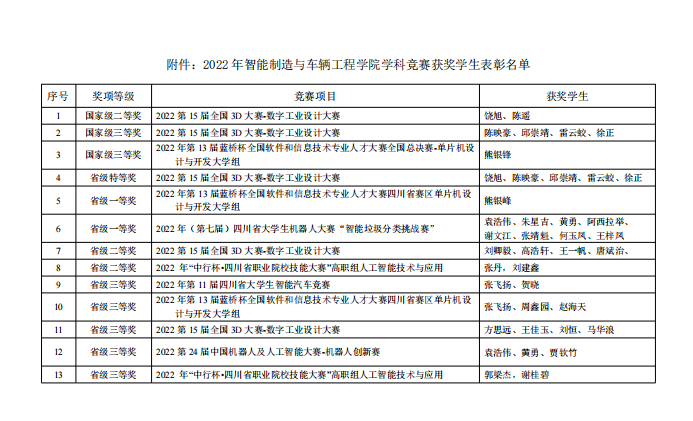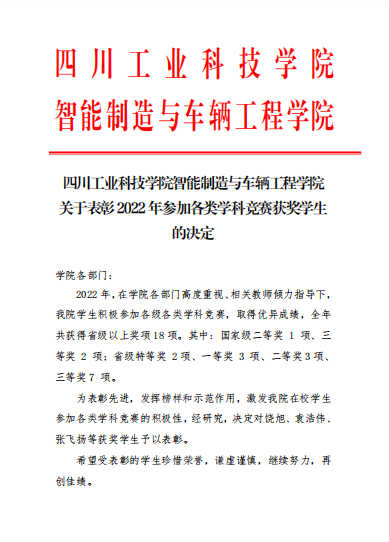 智能制造与车辆工程学院关于表彰 2022 年参加各类学科竞赛获奖学生的决定