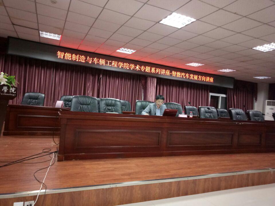 2018年11月1日晚,学院学术系列讲座之“智能汽车发展方向”主题讲座在图书馆408室顺利举行。本次讲座由陈松老师担任主讲人,讲座由“川工科新能源汽车研发团队”负责人石峥嵘担任主持。学院院长倪雨、刘家麟老师及相关专业学生到场聆听了本次讲座。