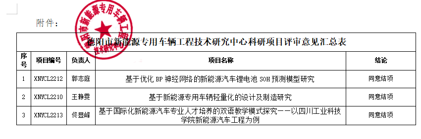 德阳市新能源专用车辆工程技术研究中心关于科研项目结项情况公示