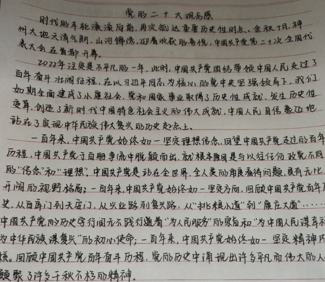 疫情阻击战期间,组织全体学生党员、入党积极分子收看“党的二十大”直播并提交心得体会