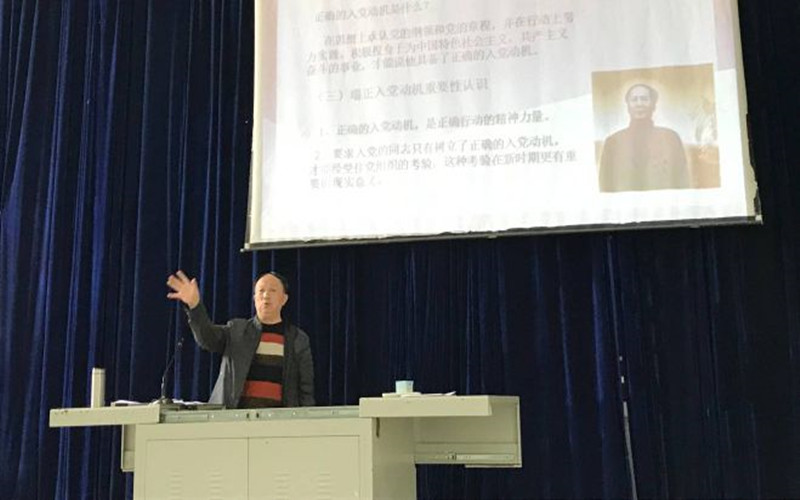 首先,何国忠从如何端正入党动机展开课程,让大家认识到要想入党就必须要树立正确的世界观、人生观、价值观,端正自己的入党动机,并强调党校学员不仅要从身体上入党更要从思想上入党。何国忠讲到身为一名党校学员需要具备的品格,即要在日常生活中严格要求自己,思想要走在上游,学习要走在前列,生活作风在同学间起到积极作用,要有服务意识,奉献精神。