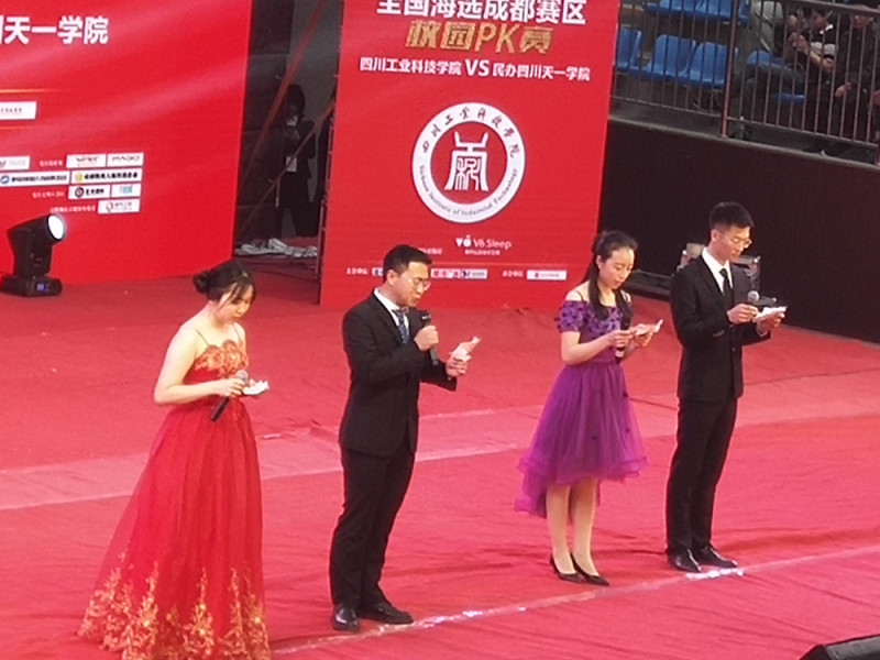 4月11日下午,财经学院参加了由浙江卫视、灿星制作、腾扬广告、项阳娱乐联合主办,四川工业科技学院承办的中国好声音全国海选成都赛区校园PK赛。比赛双方分别为四川工业科技学院和民办四川天一学院。出席本次比赛的领导有校党委书记魏崛,校党委学生工作部部长、学生处处长邓成奉,学生处副处长彭久军,学生处副处长何林贵,各部门各学院的领导、老师以及学生代表及民办四川天一学院的师生代表。中国好声音四川赛区副主任黄俊,中国好声音四川赛区执行导演谢文伦先生,成都陆福文化传播有限公司创始人陈庆彪先生作为评委出席了活动。