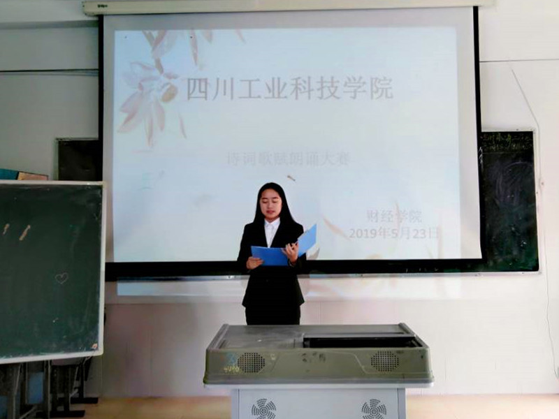 为弘扬中华民族优秀传统文化,提高大学生的人文素质和道德情操,推动校园文化建设,5月23日中午,财经学院在绵竹校区311教室举行诗词朗诵大赛。此次活动是由四川工业科技学院绵竹校区主办,财经学院团总支社会实践部承办。此次活动的评委是马磊、方静、陈怡如等老师,以及学生代表马荣桃、杨静。