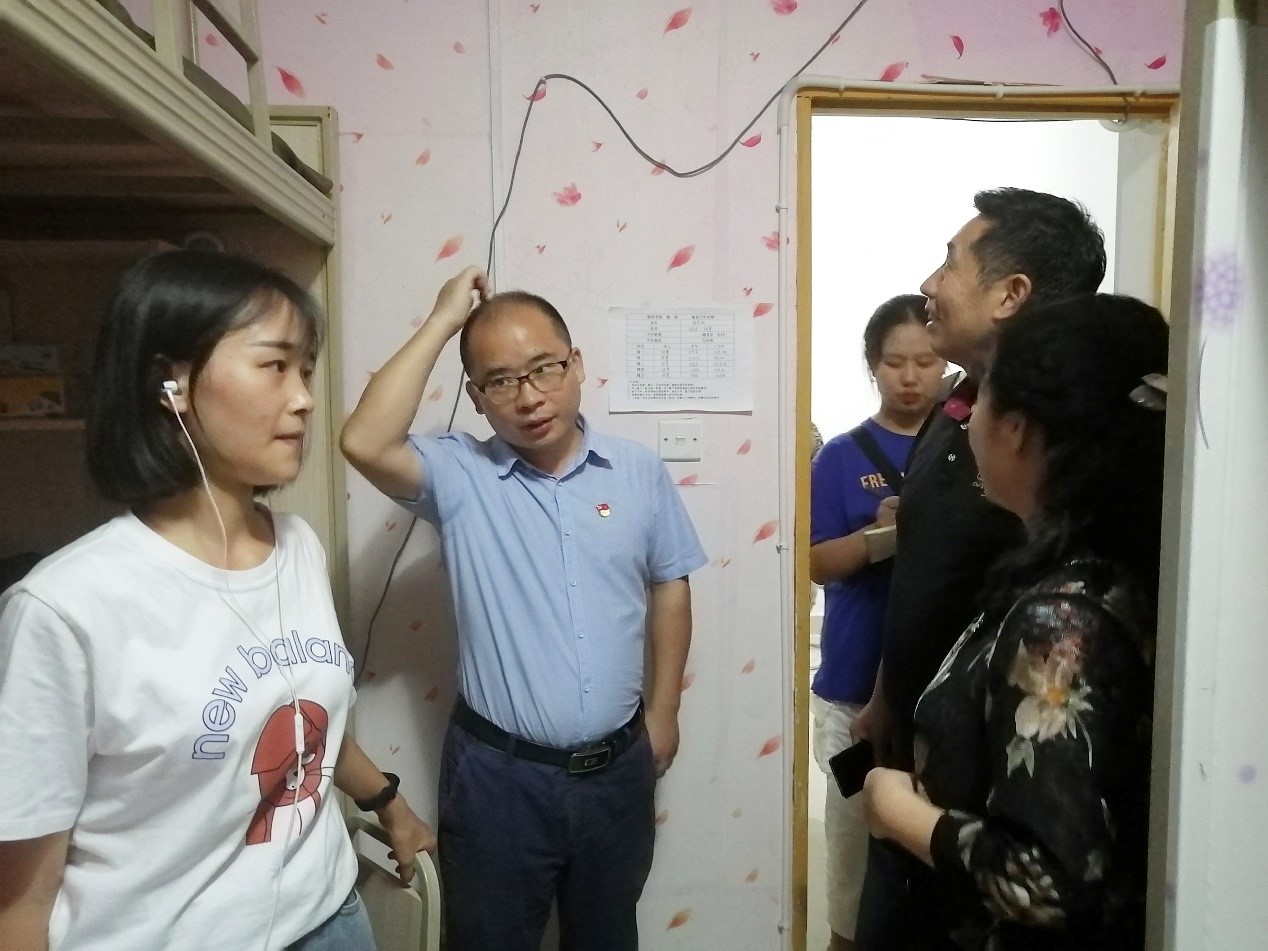 8月31日晚,学校评估办主任严代红、党委组织部部长熊定永以及财经学院院长卢淑梅、学院党支部副书记杨永岗、学院团支部书记仝科等老师和同学走进财经学院新生寝室,向我院2019级新生传达了领导、老师和同学的关心。
