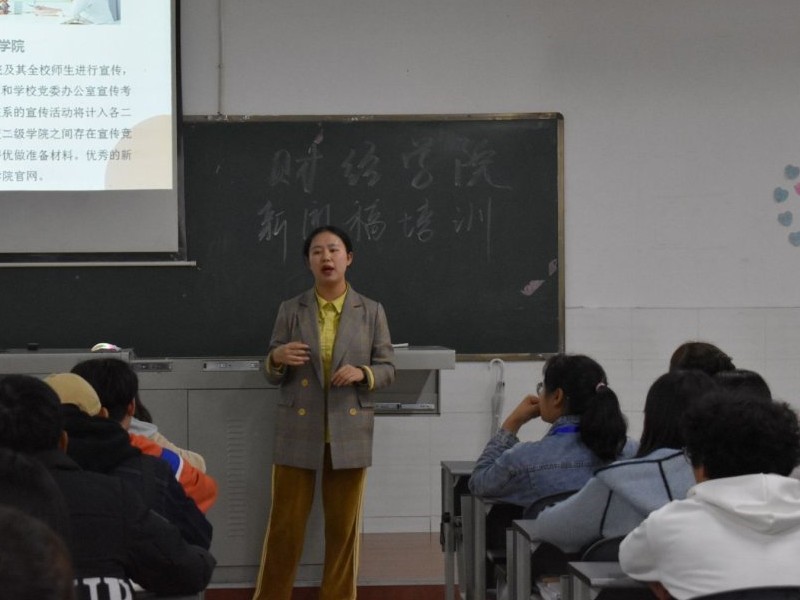 11月5日晚,财经学院团总支学生会在毓秀104教室开展了对19级团总支学生会全体学生干事的新闻稿培训会。本次会议的主讲人是新媒体中心主任杜薇。