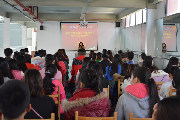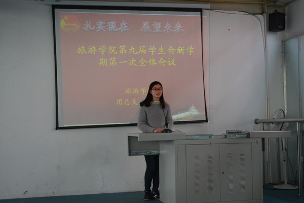 3月2日中午,旅游学院第九届团总支学生分会新学期第一次全体会议在航空实训室召开。会议由团总支书记李双晶主持,学院党支部副书记何林贵出席会议,学生会干部全体参加。