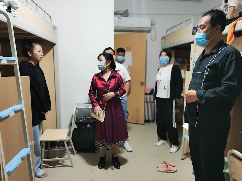 老师们走进学生宿舍与同学们亲切交谈,询问他们的兴趣爱好、家庭情况以及到校后的感受等,希望同学们以饱满的热情投入到新学期的学习生活中。卢淑梅详细地询问同学们的生活、学习情况,鼓励同学们要尽快融入到川工科的大家庭中,更好地适应大学生活。杨永岗叮嘱同学们,在特殊时期要做好自我防护工作,尽量远离人群聚集的地方,出门带好口罩,勤洗手,认真打扫寝室卫生。老师们的暖心的话语、亲切的关怀让新同学们倍感温暖,大家纷纷表示一定会以抖擞的精神、积极的态度迎接自己的大学生活,认真学好专业知识,不辜负学校的期望。