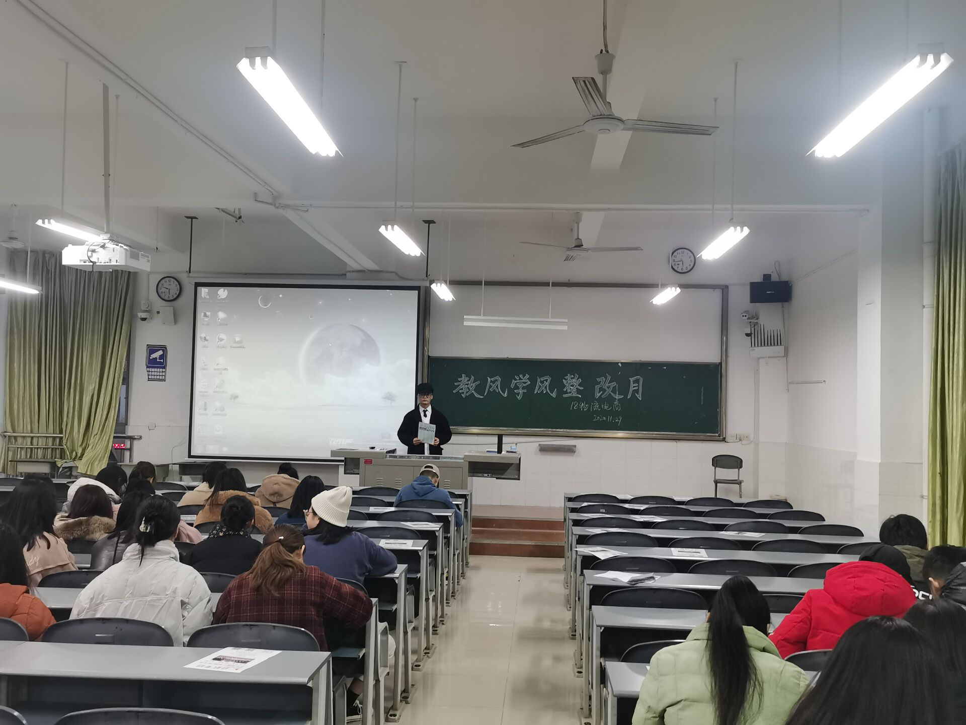 从12月1日开始,四川工业科技学院将开展教风学风整改月活动。教风学风是一所学校的灵魂,是全体师生在工作、学习和生活中所表现出来的共同的精神风貌。良好的教风学风是校园精神文明的集中体现,教风学风建设是校园精神文明建设的至关重要内容。为响应学校号召,2020年11月29日晚,管理学院各行政班级于教学楼开展“教风学风整改”主题班会,通过本次班会,让学生养成良好的学习作风与品德。