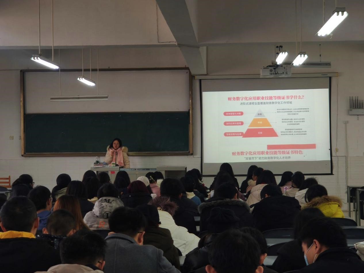 为助力培养企业财务业务一体信息化人才,12月1日, 财经学院分别在毓秀305、毓秀301、毓秀401开展业财一体信息化应用职业技能证书宣讲活动,主讲人为财经学院副院长周玉笛,学工办主任、第二党支部书记赵绍雄,财经学院院长助理郑建,财经学院2018级全体学生参加本次宣讲。