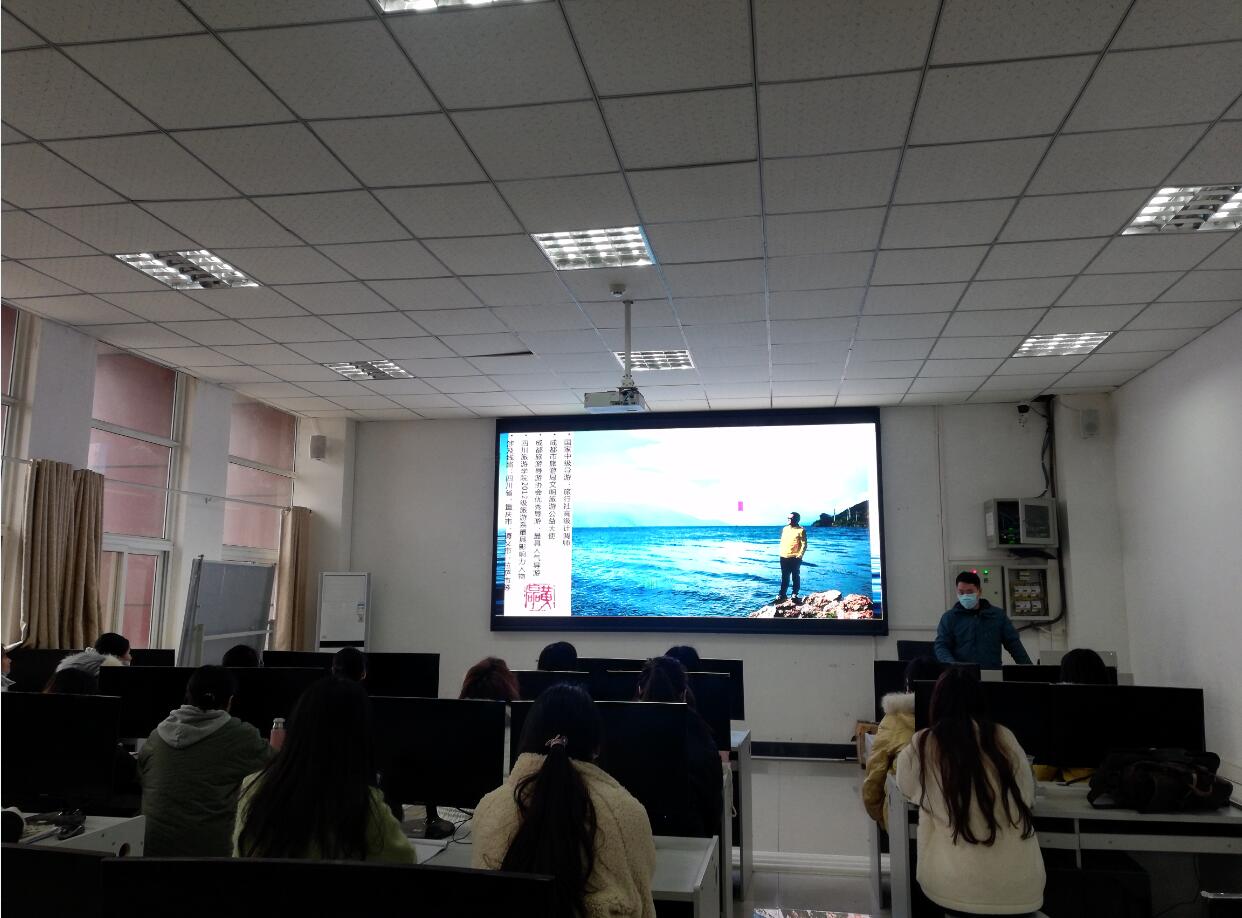 2020年12月15日,成都导游协会秘书长贺亚萍、中级导游黄磊一行3人来我校分享旅游行业发展心得。