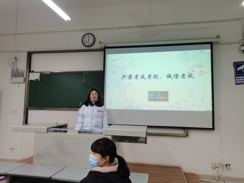 为培养学生观察、分析的能力,引导学生实践守信,诚实做人,12月27日晚,20级财务管理4班在钟灵楼202教室开展了“严肃考风考纪,诚信考试”主题班会活动。此次班会由李婷主讲,辅导员仝科参加了本次班会。