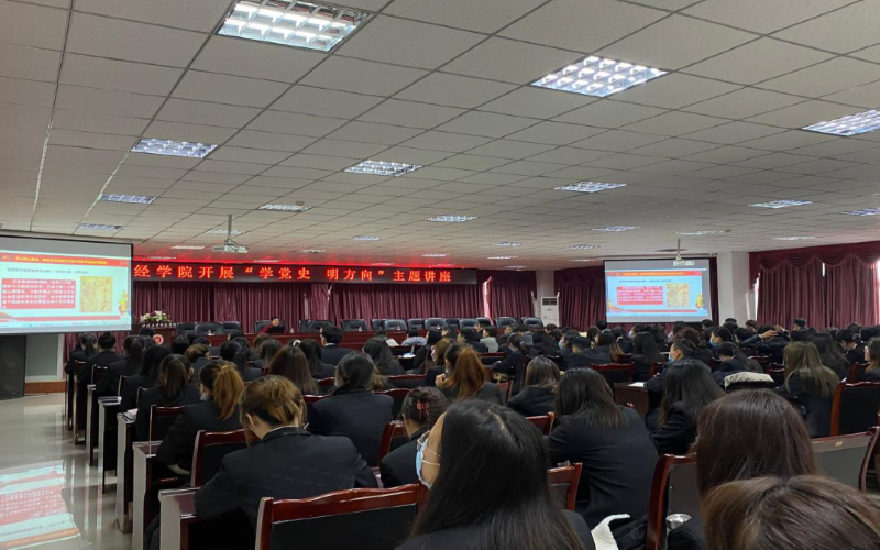 为纪念建党100周年,3月12日下午,财经学院在图书馆D-08召开“学党史 明方向”主题讲座。出席本次讲座的有财经学院党总支书记卢淑梅,党总支副书记杨永岗及全体在校教师党员、学生党员和入党积极分子。本次讲座的主讲人为卢淑梅,杨永岗为讲座主持。
