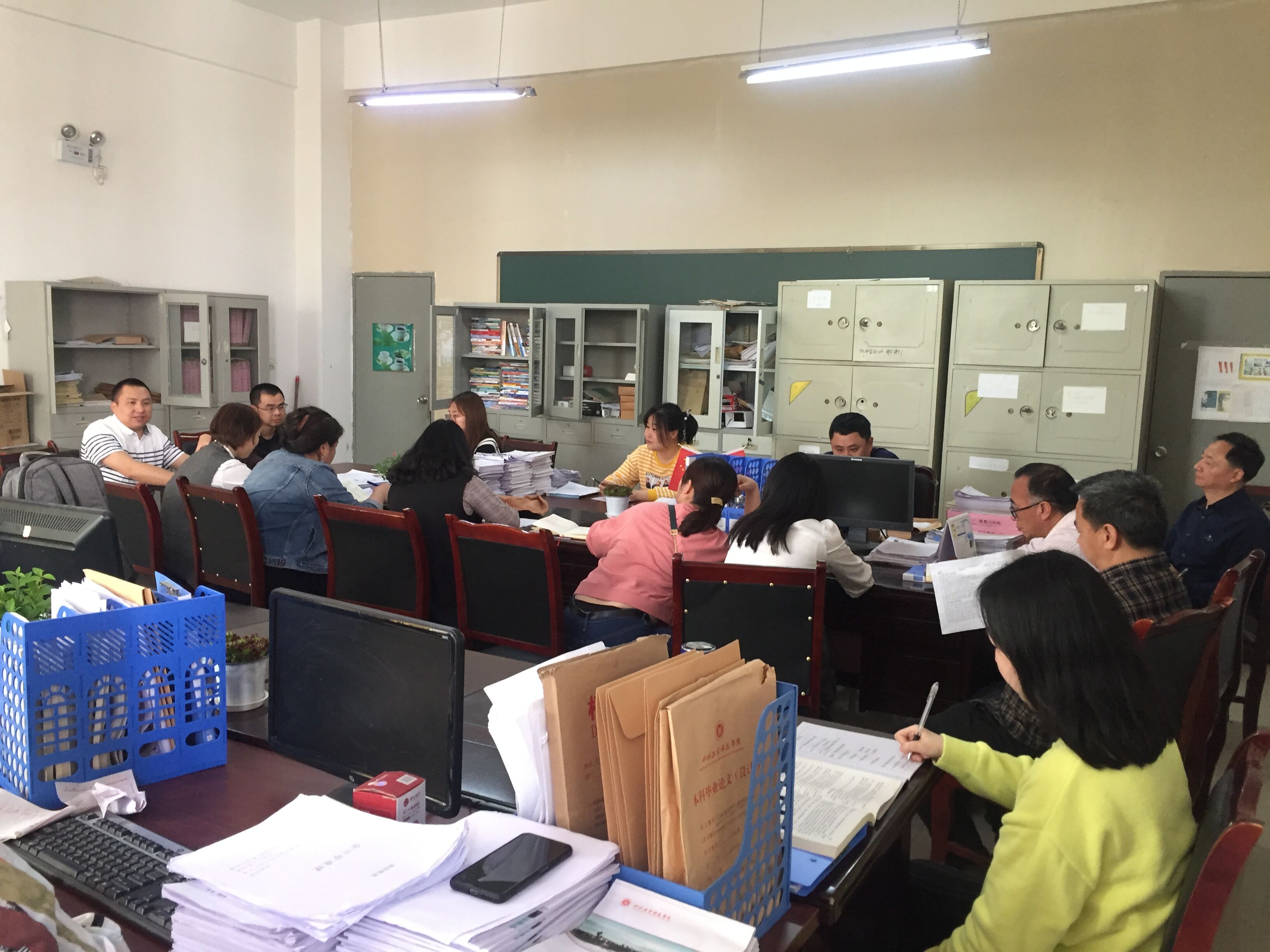 会议上全体论文指导老师逐一汇报了目前自己所带学生的论文指导情况与指导进度以及存在的问题。为了帮助学生做好本科阶段最重要的一次学业检阅,论文指导老师们倾注了汗水和心血,用他们的责任心、严谨治学的态度为同学们一次又一次地指导论文。指导老师们都认为这样从头至尾亲力亲为的写作与思维训练,无论是知识、能力,还是心理层面都会为同学们带来终身受益的成长。