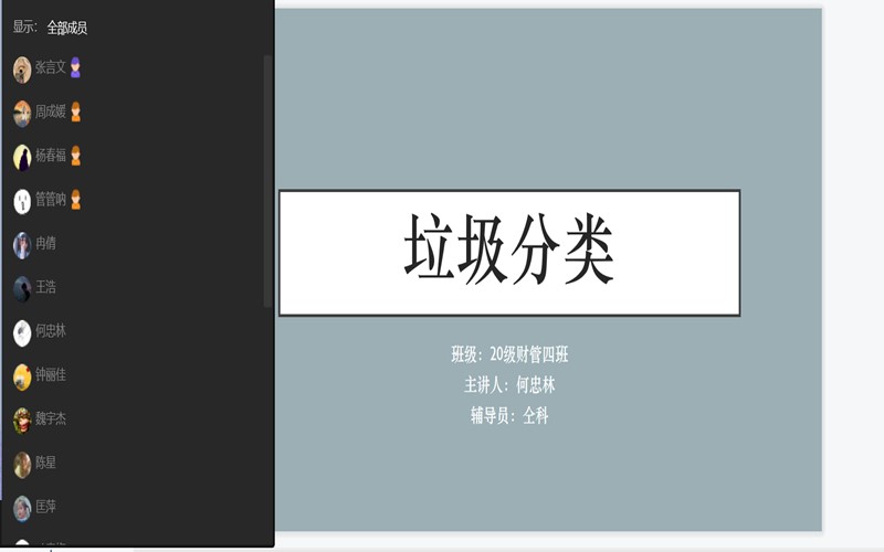 为推进学校垃圾分类工作,培养学生的环保意识,养成垃圾分类习惯,7月25日晚,20级财务管理4班开展了以“垃圾分类”为主题的班会活动。班会由何忠林主持,辅导员仝科参加了此次班会活动。
