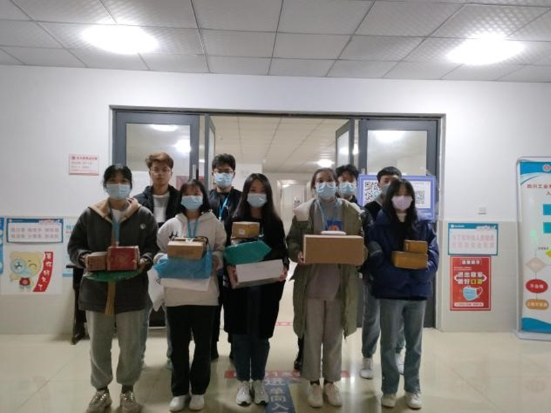 病毒是冰冷的,但我们是温暖的。我院学生会部分成员在团总支书记魏欢、辅导员陈财的带领下,为社区管理、健康监测的同学们提供后勤保障,购买生活用品、派送“爱心”快递,让同学们感受到学院的温暖。