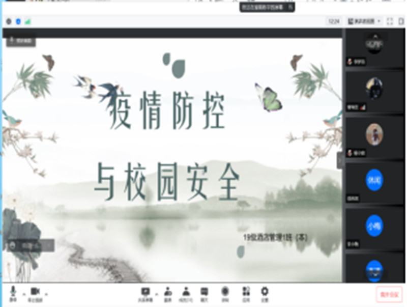 在疫情防控常态化的大背景下,为进一步加强校园学生管理工作,落实疫情防控措施,2022年4月5日晚7点20,管理学院各班级利用线上腾讯会议组织召开了“做好疫情常态化管理,坚持个人防护不放松”主题班会。