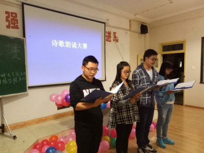 为了进一步丰富我院大学生的文化生活,激发学生的爱国激情,推广普通话。我院于2016年10月25日晚6点,在绵竹校区211教室举行了诗歌朗诵大赛,本次活动由财经学院团总支办公室统一组织,出席本次比赛的评委老师有卢淑梅院长、韩未斌老师、张照明老师。