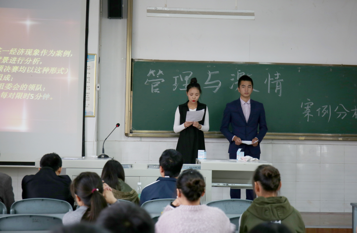 值四川工业科技学院“第十届校园技能、文化、艺术节”系列活动开展之际,由工商管理学院筹划、承办的“管理与激情”管理案例分析大赛,于11月3日中午12时在毓秀楼101教室隆重拉开序幕。出席本次活动的有工商管理学院党支部副书记邵长辉,专任教师王波、伍晓龙,辅导员李剑锋、朱学坤,以及工商管理学院部分班级学生代表。