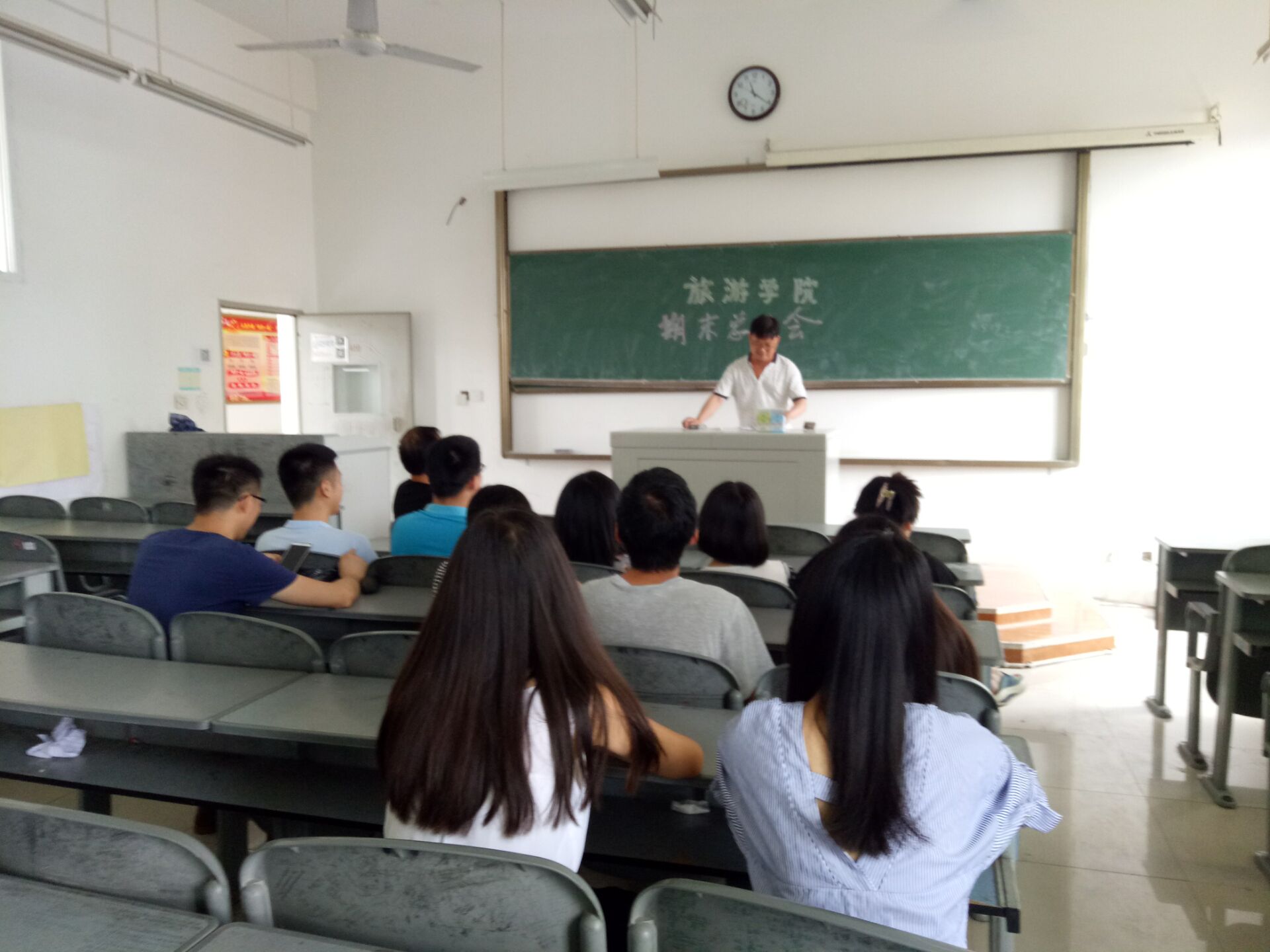 6月15日,旅游学院召开全院教职员工大会,传达贯彻学校6.14会议精神,安排和部署期末工作及下学期工作。