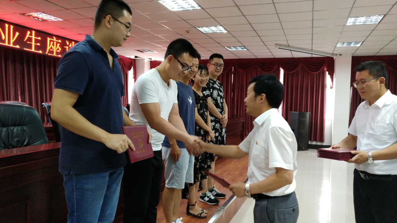 在座谈会上各位领导为毕业生代表颁发了毕业证书并合影留念。