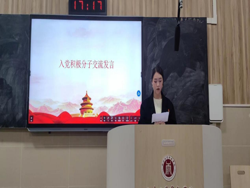 大会第三项,由21级国际经济与贸易专业的张莎莎等三名入党积极分子代表讲话。他们讲述了自己的入党动机和今后对入党的准备,并表示自己会从现在开始更加努力要求自己,以身作则,争取早日加入中国共产党。