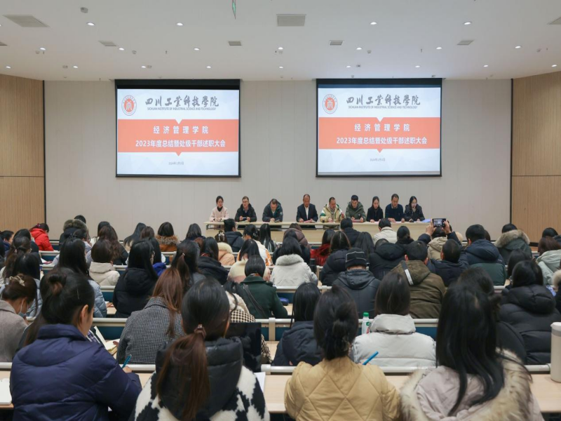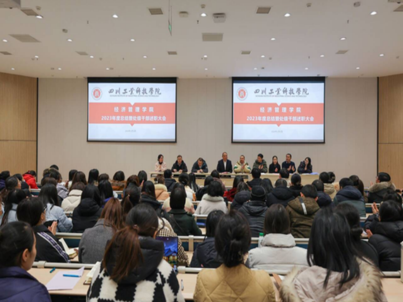 1月3日下午,经济管理学院2023年度总结暨处级干部述职大会在龑江学村B区报告厅顺利召开。学校党委副书记杨朋,人事处代表刘霞、教务处代表姜伟、学生处代表何林贵,学院行政领导以及全体教职工参加会议,会议由综合办副主任周星主持。