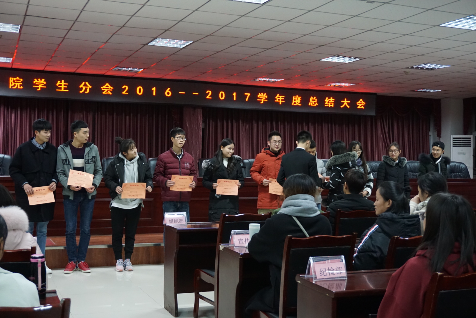 1月3日下午,我院全体学生干部在图书馆召开2016-2017学年度工作总结暨表彰大会。何林贵书记、李双晶老师参加了本次会议。
