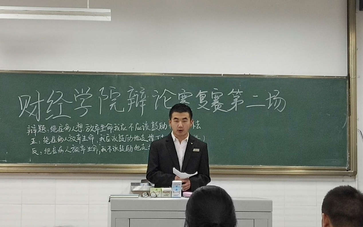 本次辩论赛围绕主题“绝症病人想放弃生命我应不应该鼓励他支撑下去”展开辩论。其中正方观点是应该鼓励,提出鼓励便是给人希望和信心,生命是可贵的,相信奇迹会发生。反方认为不应当鼓励,提出没有质量的活着不如让病人安心的离开的观点并进行驳论。本次辩论赛的激烈辩驳让观众们热血沸腾,跃跃欲试。