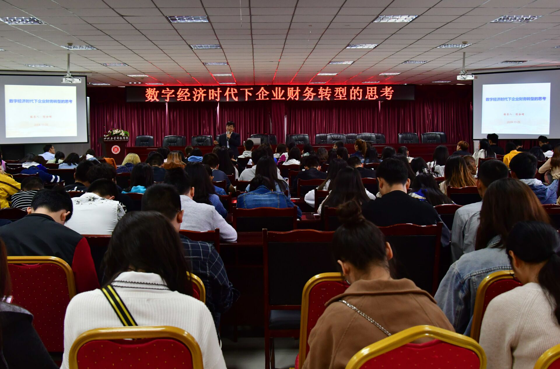 10月25日,财经学院在图书馆408开展“数学时代下企业财务转型的思考”专题讲座。西华大学会计学教授谢合明为本次讲座的主讲人,财经学院院长卢淑梅、副书记杨永岗及财经学院部分老师、学生代表参加。