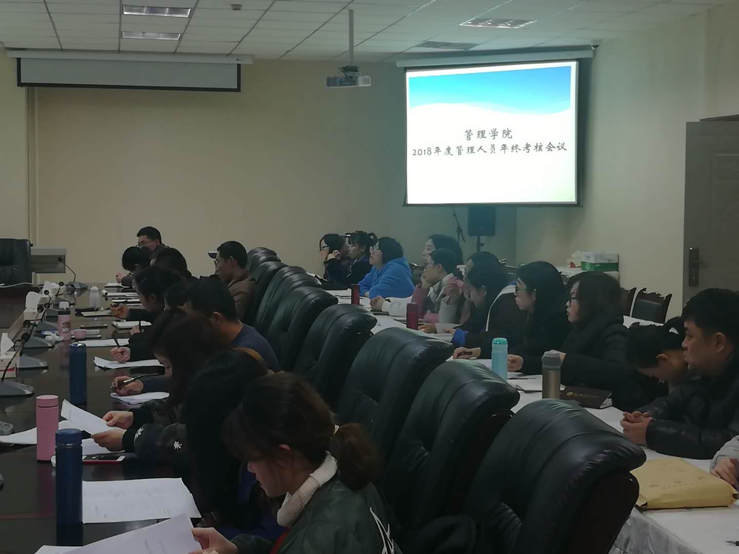 2018年12月24日,下午15:20,管理学院在图书馆401召开了管理人员年终考核会议,本次考核学院严格按照 川工科【2018】178号文件、《四川工业科技学院教职工考核办法(试行)》、《四川工业科技学院处级单位考核办法(试行)》、《四川工业科技学院管理人员年度考核实施细则》等规定对学院 5名管理人员进行了考核,包括熊清明、王波、张勇、施杨和陆林科。本次考核以王进院长为组长,毛燕、张东国、邓杰、温兴燕、毛慧、周攀为考核小组成员。