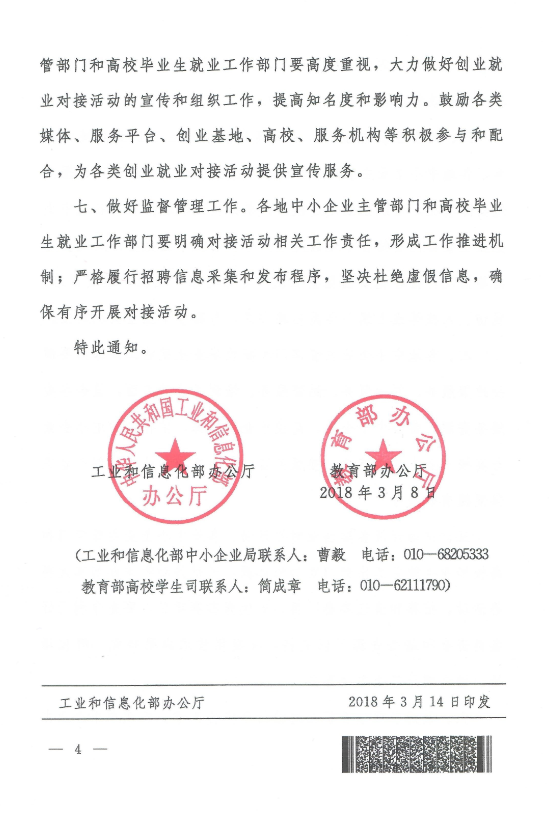 工业和信息化部办公厅 教育部办公厅关于开展2018年中小企业与高校毕业生创业就业对接服务工作的通知