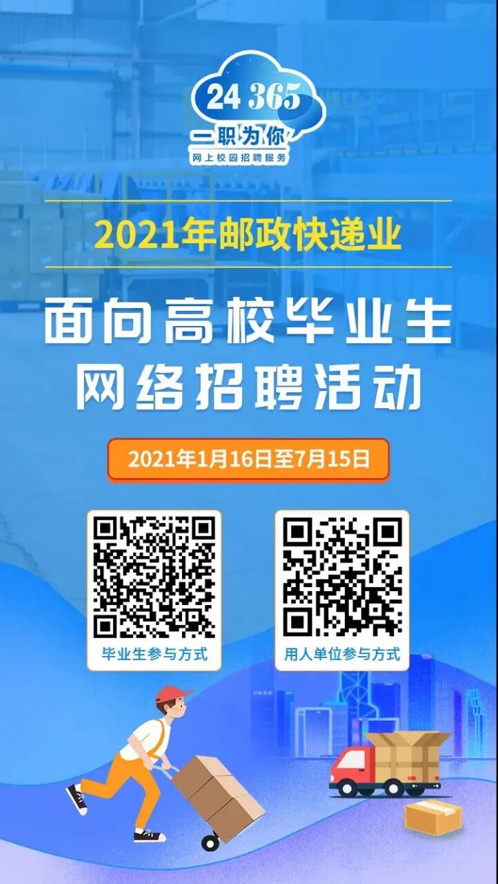 1月16日,教育部“24365校园招聘服务”推出邮政快递业面向高校毕业生网络专场招聘会,为邮政快递业用人单位与高校毕业生供需对接搭建平台。截至目前,已有100余家企事业单位报名参会,首批提供就业岗位5千余个。
