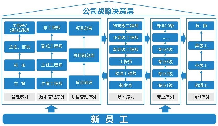 公司设计“管理、技术、专业、技能”四大职业发展通道及轮换路径,以可视化方法实现岗位职责、学习要求、能力及绩效要求、福利待遇等的显现化,打造内、外职业生涯相互提升的可视化职业生涯发展体系,为员工向上发展提供“牵引力”