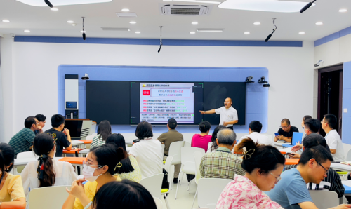为树立新时代教育理念,深化教育思想大讨论,贯彻落实OBE教学理念,8月3日下午,我校在龑江校区E406智慧教室举行线上及线下“基于OBE教育理念的课程认知升级与改革创新”的专题培训。