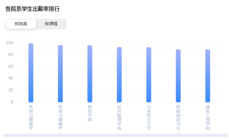 上周全校学生课堂签到率为94.82%,具体分布如下: