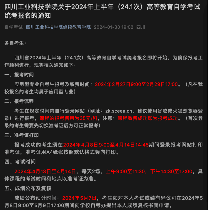 2024年上半年(24.1次)高等教育自学考试统考报名通知