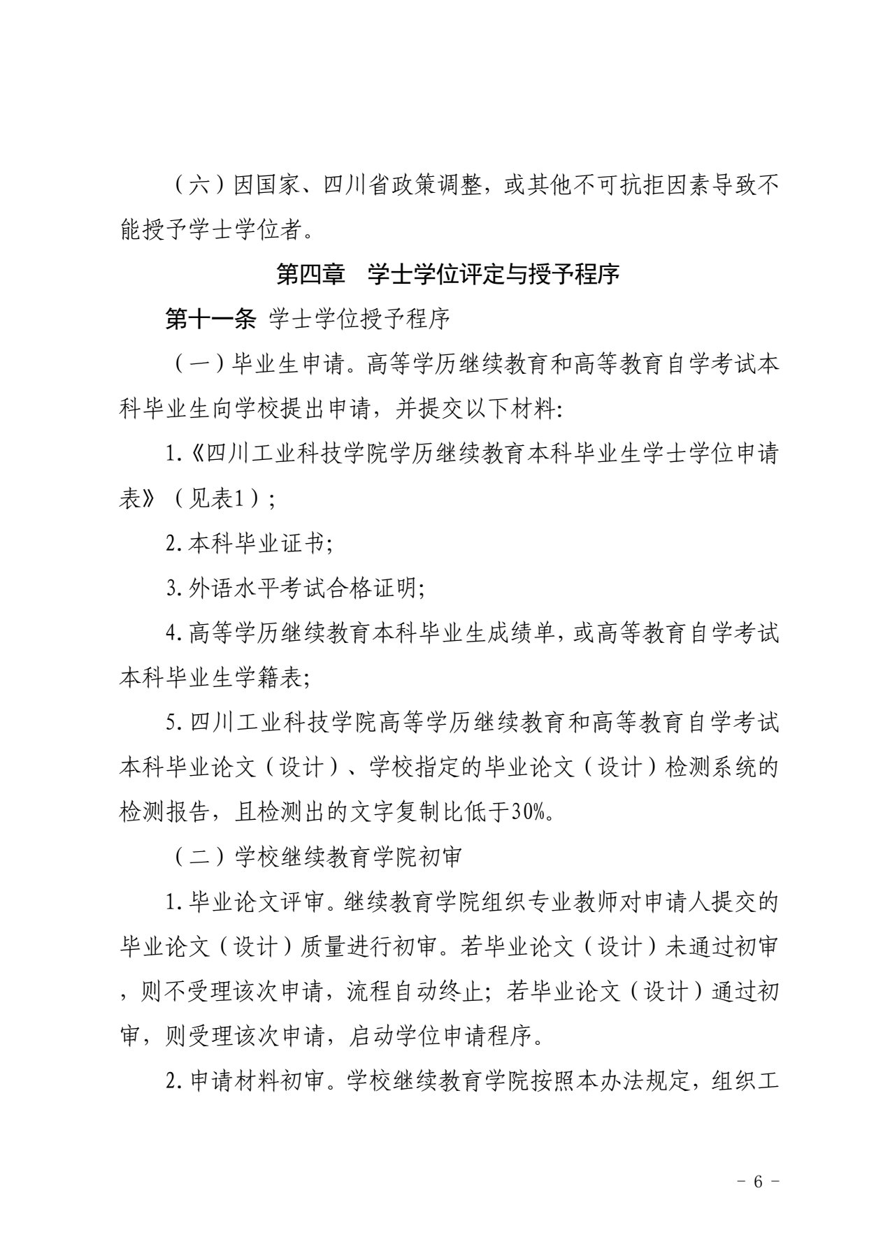 四川工业科技学院关于印发《学历继续教育本科毕业生学士学位授予办法》的通知