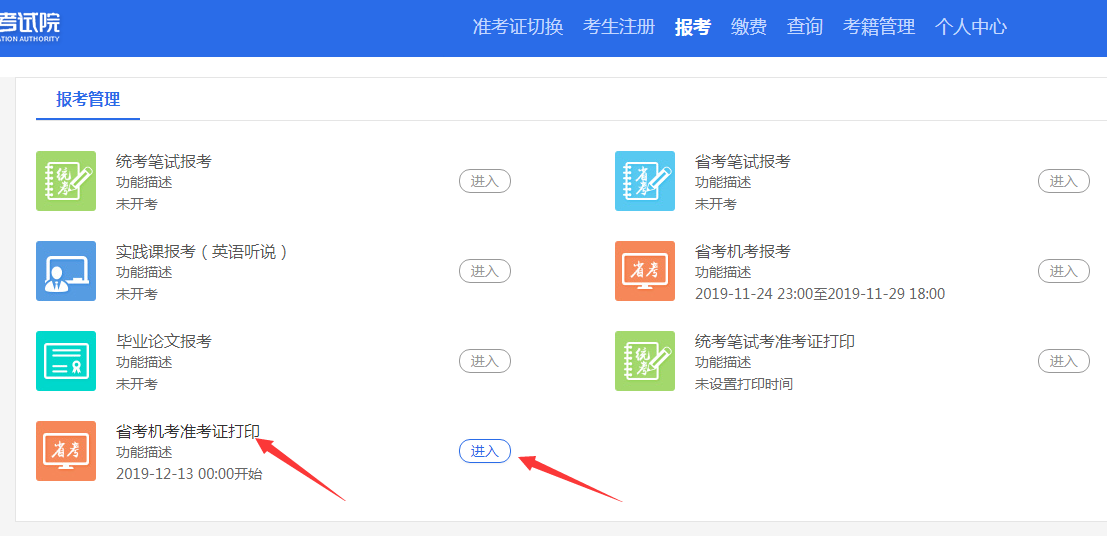 “进入”,即可打印准考证。