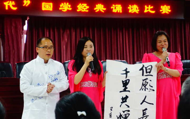 比赛中,老师们个个精神饱满、举止大方、激情高昂,以朗读、诵唱、表演等各种形式诠释经典,比赛现场弥漫着浓重的国学氛围,经典的思想精髓犹如润物细无声的春雨,荡涤着师生的心灵。有管理学院工会小组带来的《将进酒-满江红*写怀》,机关二支部工会小组带来的《登峰揽胜》,更有教育学院工会小组带来的《水调歌头》,护理学院工会小组带来的《关雎+蒹葭》,还有如《春江花月夜》、《爱莲说》、《道德经》、《雨霖铃》等优美却不失典雅的国学经典。经过激烈的比拼,护理学院工会小组的老师们身着旗袍,袅袅娉婷,以优雅唯美的颂唱引人入胜,最终拔得头筹。