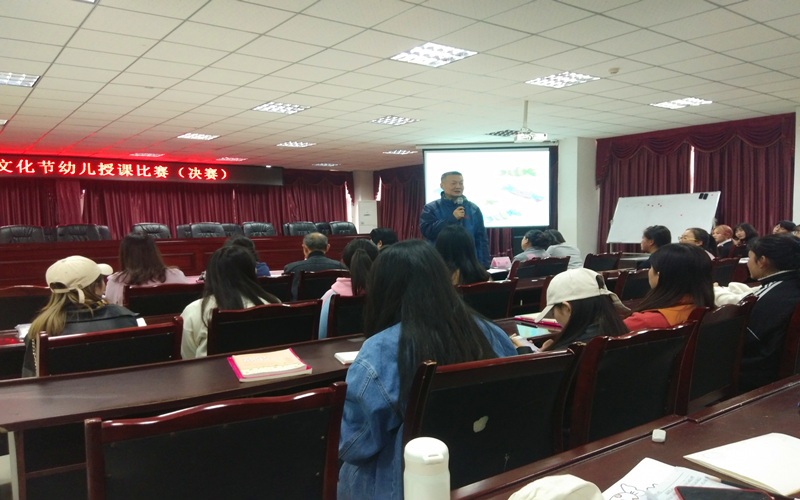 授课结束,教育学院院长吴节义进行了点评,首先他对本次参加比赛的选手表达感谢和祝贺,经过一年的学习,同学们有了很大的进步,此次比赛授课内容基本符合幼儿发展规律,同学们已基本具备幼儿教师要求。同时吴院长也指出了一些不足,希望大家能在以后的比赛中注意规避,再接再厉取得更大的进步。